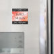 It was a bit smaller than expected, but I was too excited to check dimensions. The product itself send well printed though the grey text is a bit paint. Magnet worked perfectly on my fridge.