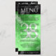 Add sophistication to 38th emerald wedding anniversary celebrations with this dinner menu, which features elegant lettering and hexagonal confetti on emerald green and black backgrounds. Customise with couple's names, dates of marriage, venue details, menu items, and congratulatory messages.