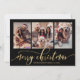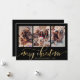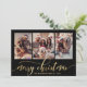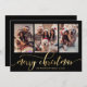Elegant 3 Photo Collage Black and Gold Christmas Holiday Card