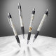 This stylish pen helps add an extra special touch to 3rd leather anniversary celebrations! Elegant black lettering with gold-dusted hexagonal confetti and the number 3 in a gold foil heart on a luxurious white leather background add a memorable touch for this special occasion and milestone. Customise with the couple's names, dates of marriage, and up to two (2) congratulatory messages.