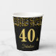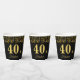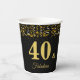Elegant 40 and fabulous Birthday with festive golden confetti on black Paper Cups. Text can be personalised.