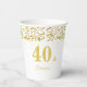 Elegant 40 and fabulous Birthday with festive golden confetti on white Paper Cups. Text can be personalised.