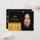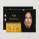 Elegant, classic, glamourous and feminine style party invitation. A gold coloured ribbon and bow with golden glitter and sparkle, a bit of bling and luxury for a birthday. Black background. With the text: 40th Birthday! on front. Template for Your photo.
