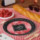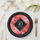 Celebrate the 40th ruby wedding anniversary with these stylish paper plates! Elegant black and white lettering with hexagonal confetti on a ruby red background add a memorable touch for this special occasion and extraordinary milestone. Personalise with couple's names, date(s) of marriage, and congratulatory messages on the rims.