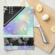 Celebrate the 43rd opal wedding anniversary with this stylish hand towel! Elegant black and white lettering with hexagonal confetti on an iridescent opal background bordered by black and white bars add a memorable touch for this special occasion and extraordinary milestone. Personalise with the couple's names and dates of marriage.