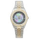 Celebrate the 43rd opal wedding anniversary with this commemorative watch! Elegant lettering with hexagonal confetti on an iridescent opal background add a memorable touch for this special occasion and extraordinary milestone. Customise with couple's names, dates of marriage, and congratulatory messages.