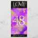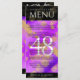 Add sophistication to 48th amethyst wedding anniversary celebrations with this dinner menu, which features elegant lettering and gold-dusted hexagonal confetti on amethyst purple and black backgrounds. Customise with couple's names, dates of marriage, venue details, menu items, and congratulatory messages.