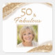 Elegant 50 & Fabulous Gold Photo Birthday Square Sticker
