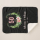 Elegant 50th anniversary black floral Sherpa Blanket. Personalise with age, names and dates.