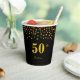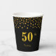 Elegant 50th Birthday and golden confetti on black Paper Cups. Text can be personalised.