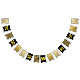 An elegant featuring faux gold chevron stripes on white; a bold numeral 50 on black; a golden check block pattern on black, a faux foil shiny gold panel all repeating across the 16 panels. Ideal for anniversary, business events and upmarket birthday celebrations.
