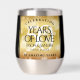 Make the 50th golden wedding anniversary an unforgettable celebration with this commemorative stainless steel stemless wine tumbler! Elegant lettering with hexagonal confetti on a faux gold foil background add a memorable touch for this special occasion and extraordinary milestone. Customise with couple's names, dates of marriage, and congratulatory message. Reverse shows identical design.
