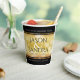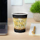 Celebrate the 50th golden wedding anniversary with these stylish paper cups! Elegant black and white serif lettering with hexagonal confetti on a gold foil background add a memorable touch for this special occasion and extraordinary milestone. Customise with couple's names, years of marriage, and congratulatory messages. Reverse shows identical design.