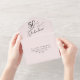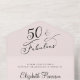 Chic and elegant pale pink 50th birthday party all in one invitation with "50 & Fabulous" in a stylish calligraphy script on the top inner flap. Personalise the birthday party invitation and details in a mix of simple typography and a pretty modern script. A tear away RSVP postcard provides a convenient eco-friendly and envelope-free response from your guests.