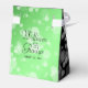 Celebrate the 55th wedding anniversary in style with this commemorative favour box! Elegant black serif and sans serif lettering with hexagonal confetti on an emerald green background edged with black bars add a memorable touch for this special occasion and extraordinary milestone. Customise with the happy couple's names. Add even more customisation with a date for the emerald anniversary.