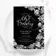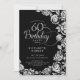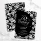 Black silver floral 60th birthday party invitation. Elegant design featuring roses, faux silver foil and typography script font. Trendy invite card perfect for a stylish female bday celebration. Can be customised to any age. Personalise with your own details. Printed Zazzle invitations or instant download digital printable template.