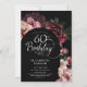 Elegant floral 60th birthday party invitation. Beautiful classy design with botanical accents. Features burgundy and pink peonies, roses on dark moody background and trendy typography script font. You can choose printed invitations and/or instant download digital template. Personalise with your own details. Perfect for a stylish womens bday celebration.