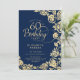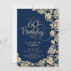 Elegant 60th Birthday Navy Gold Roses Invitation