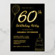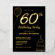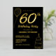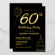 Elegant 60th Birthday Party Black and Real Gold Foil Invitation with balloon and birthday cake.