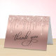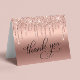 Chic 60th birthday party folded thank you card featuring "Thank You" in elegant calligraphy, a rose gold faux foil background and rose gold faux glitter. On the inside, personalise your thank you message and signature or leave blank for a handwritten note.