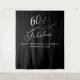 Elegant personalised 60th birthday party tapestry black photo booth backdrop with "60 & Fabulous" written in a stylish white script. You can customise with her name and birthday date