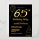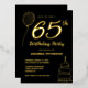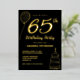 Elegant 65th Birthday Party Black and Real Gold Foil Invitation with balloon and birthday cake.