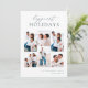 Share cheer with these modern holiday cards featuring 6 of your favorite photos in a grid collage layout. "Happiest Holidays" appears at the top in hand lettered calligraphy and classic serif lettering. Personalize with your family name and the year at the lower right.