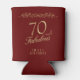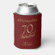 Elegant Red 70 and Fabulous Ornament 70th Birthday Party Can Cooler. 70 and fabulous text in trendy golden script on a dark red background. Personalise it with your name and your age, and make your own elegant birthday party can coolers for a woman`s birthday party.