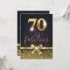 Elegant Stylish Black and Gold 70th Birthday Invitation. Design features of gold glitter and gold sparkly bow on the front as well as gold foil 70. Add party details on the back.