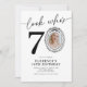 Celebrate an incredible milestone in refined, timeless style with this elegant Look Who’s 70 photo birthday invitation. Featuring a clean, modern layout, the design highlights your chosen photo inside a delicate illustrated frame, finished with a soft bow detail for a charming and graceful touch.