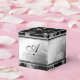 Celebrate the 70th wedding anniversary in style with this commemorative favour box! Elegant black script and serif lettering with hexagonal confetti on a platinum background edged with black bars add a memorable touch for this special occasion and extraordinary milestone. Customise with the happy couple's names, add an initial or monogram for their surname, and add dates for their platinum anniversary. Personalised messages can be added to the top and side panels.