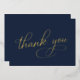 Show your gratitude to your 75th birthday party guests in style with this elegant dark blue thank you card. The front features "Thank You" showcased in a calligraphy script, rendered in genuine gold, silver, or rose gold foil. On the back, you can add a personal message and your name in a lovely, handwritten-style font.