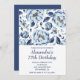 Elegant 75th birthday invitations Floral Vintage Blue rustic watercolor
