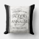 Celebrate the 75th diamond wedding anniversary with this stylish throw pillow! Elegant lettering with stylised diamond confetti on a white background edged by black bars add a memorable touch for this special occasion and extraordinary milestone. Customise with couple's names, dates of marriage, and congratulatory messages. Reverse shows identical design.