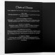 This elegant funeral program template features a sophisticated black background with a modern yet timeless layout, creating a dignified and heartfelt tribute to a loved one. The black and white design includes a collage of carefully placed photo frames, allowing for a personal touch by showcasing cherished memories. The stylish script and serif fonts provide a refined and graceful look, while the carefully arranged sections for acknowledgements, order of service, and a heartfelt poem ensure a seamless flow of remembrance. Perfect for memorial services, celebrations of life, or funeral ceremonies, this tasteful program design helps honour a life well lived with warmth, love, and elegance.