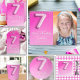 Elegant 7th Birthday girl with photo Numer Ballon Invitation