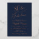 Chic dark navy blue 80th birthday party invitation with "80 & Fabulous" and her name in elegant calligraphy scripts and the party details in simple lettering, all rendered in your choice of genuine gold, silver or rose gold foil.