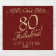 Elegant 80 and Fabulous Ornament 80th Birthday Sparkling Wine Label. 80 and fabulous text in trendy golden script and an elegant ornament on a red background. Personalise it with your name and your age, and make personalised elegant wine labels for a birthday party.