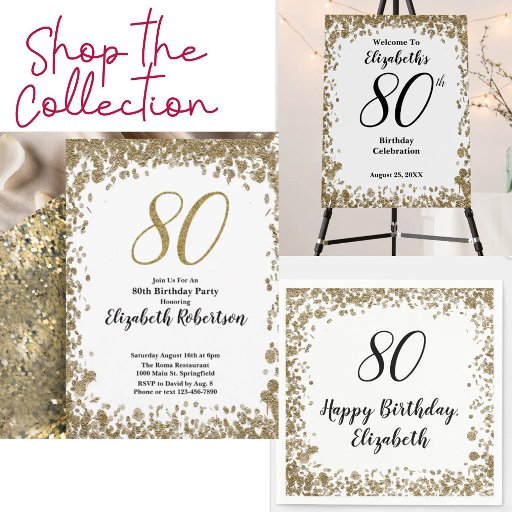 Elegant 80th Birthday Invitation For Her in Gold