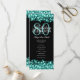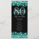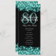 Elegant 80th Birthday Party Program Teal Menu
