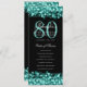Elegant 80th Birthday Program Turquoise Thank You Invitation