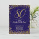 Elegant 80th Blue Birthday Invitation Gold Sequin