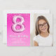 Elegant 8th Birthday Pink Number Balloon with phot Invitation