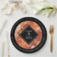 Celebrate the 8th bronze wedding anniversary with these stylish paper plates! Elegant black and white lettering with hexagonal confetti on a bronze foil background add a memorable touch for this special occasion and milestone. Personalise with couple's names, date(s) of marriage, and congratulatory messages on the rims.