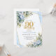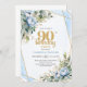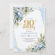 Elegant 90th Birthday Invitation Blue Floral Gold