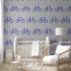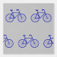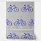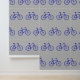 The design features abstract fine art of blue bicycles on a grey background in an elegant minimalist pattern. The design allows for customisation of the background colour to match your space's colour palettes.