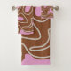 Elegant Abstract Brown Pink Wavy Stripe Modern Bath Towel Set