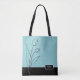 Elegant modern simple cute girly design features abstract of flower line art with turquoise colour background . Custom allover print tote bag personalised with your monogram name or other text. This stylish bag will be perfect as personalised gift.