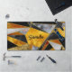 Elegant abstract gold black geometric desk mat. To make it extra special, it is also monogrammed and personalised with name or initials or any text you like, click the "customise further" link and use the design tool to modify the design if you like.
