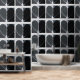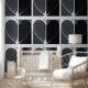 The artwork an elegant pattern of half heart design in black and grey colours. The design allows for customisation of the background colour to fit with your space's colour palettes.